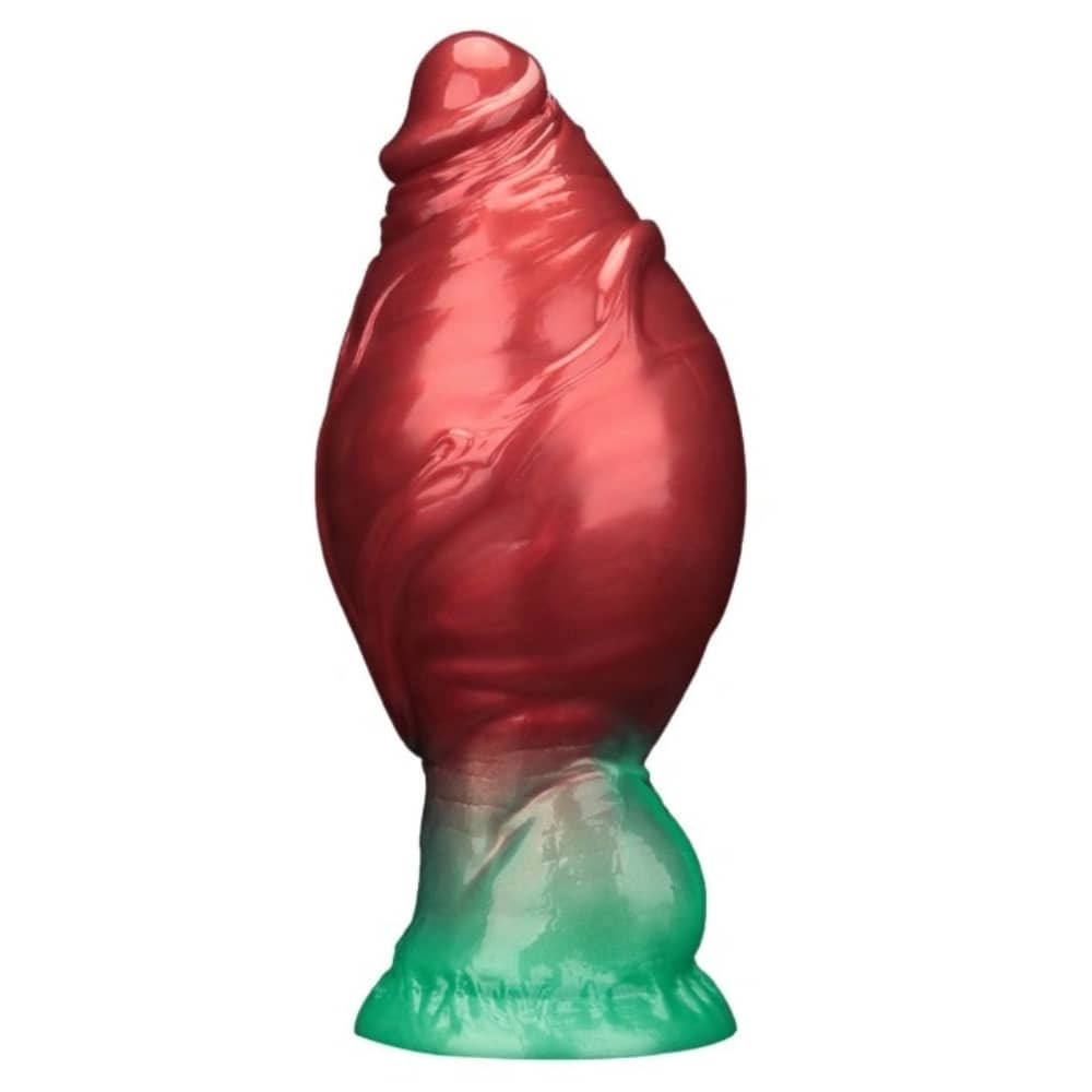 A játékszer alaphelyzetben is rugalmas, belsejében egy tömörebb szilikon maggal, ami extra stabilitást ad. Felületét kívülről kiváló minőségű, selymes tapintású, zöld–piros színátmenetes szilikonköpeny borítja, részletgazdag, erezetes felülettel, herékkel és kiszélesedő talppal.